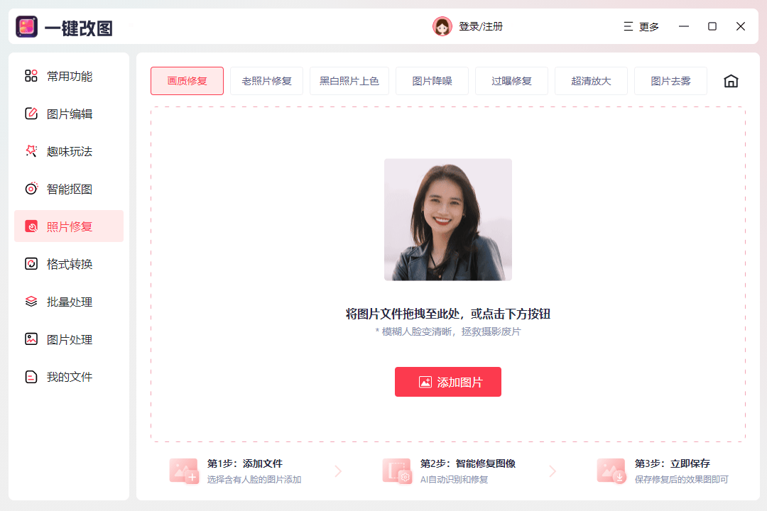 该软件以其简洁的操做流程和强大的智能修复能力著称,采用的图像处置算法较为先辈,且它支撑批量处置,