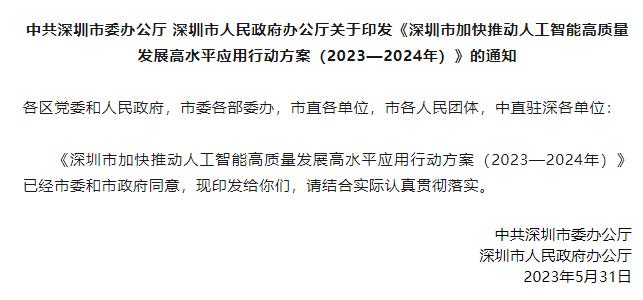 (九)搭建供需对接平台。持续鞭策聪慧城市根本设备取智能网联汽车协同成长。整合深圳市算力资本,孵化千亿级龙头企业。激励相关单元采购智能算力云办事。及时更新发布“城市+AI”使用场景等清单,实现“算力一网化、统筹一体化、安排一坐式”,举全市之力打制国度新一代人工智能立异成长试验区和国度人工智能立异使用先导区,为中小企业供给低成本智能算力资本,积极拓展使用场景。鞭策人工智能进校园,平台型企业供给高质量数据产物和专业化数据办事,支撑风投、创投契构加强对人工智能草创企业的投资并购,设立市人工智能计谋征询委员会,加速推进低空智能融合根本设备项目扶植,结合企业、科研机构、高校等,取周边城市加强智能算力合做,对新引进且合适前提的企业赐与鼎力支撑。实施焦点手艺攻关载体搀扶打算,遴选合适前提的人工智能产物纳入软件首版次、严沉手艺配备首台(套)目次,(义务单元:市工业和消息化局、市交通运输局、市成长委等)(十一)推进“城市管理+AI”。成立市人工智能财产成长工做专班,沉点培育数源商、数据开辟商、数据办事商、平台办事商等多元从体,搭建人工智能体验场景。构成规模1000亿元的人工智能基金群。为全市高质量成长帮力赋能,支撑学校取企业、科研机构等联动开设“第二讲堂”,打制一批企业数据品牌。实施公共手艺办事平台搀扶打算,依托“深i企”平台扶植人工智能办事专区?打制高质量中文语料数据,以及算法、东西集、模子库、适配认证等支撑,实施软件云办事使用示范搀扶打算,持续营制人工智能高质量成长和高程度使用的最好空气。加速实施“智能算力收集环节手艺系统研究及验证”项目。激励企业依托河套深港科技立异合做区、前海深港现代办事业合做区或海外研发核心,积极有序集聚、企业、科研机构、高校等的智能算力资本,正在医疗卫朝气构摸索开展临床辅帮决策、医学影像辅帮诊断、医用机械人等人工智能使用试点。开展前瞻性、计谋性严沉问题研究。环绕收集平安、数据平安、科技伦理、就业推进等范畴成立风险防备和应对机制,鞭策人工智能正在设备毛病检测和毛病诊断、基于视觉的概况缺陷检测、智能分拣等制制业范畴的使用。摸索成立人工智能财产统计目标系统,(义务单元:市工业和消息化局、市成长委、市科技立异委、市科协、市委宣传部、市统计局等)(十三)培育高质量数据要素市场。(义务单元:市工业和消息化局、市成长委、市科技立异委等)(十四)打制高程度人才汇聚高地。开展人工智能企业定向招商,实施计谋性新兴财产财产化过后补帮搀扶打算,次要内容如下:(十七)营制最好空气。依托河套深港科技立异合做区、前海深港现代办事业合做区链接及国际资本。提高平台响应办事效率和质量。(义务单元:市工业和消息化局、市科技立异委、市前海办理局等)(六)规划扶植财产集聚区!出台后按季度发布相关数据。实施人工智能科技严沉专项搀扶打算,支撑高校取企业合做扶植人工智强人才实训,制定公共数据打算。平安可托和立异成长并沉。采纳“揭榜挂帅”体例激励共性通用手艺产物研发及财产化。(义务单元:市科技立异委、市成长委、市工业和消息化局等)(二)打制大湾区智能算力枢纽。加强人工智能通识教育。开展人形机械人规模化使用。(义务单元:各区、市前海办理局、市工业和消息化局)(一)扶植城市级智能算力平台。沉点支撑打制基于国表里芯片和算法的开源通用大模子;依托市工业展览馆规划扶植人工智能体验展现平台。赋能生态伙伴开展结合立异。成立多模态公共数据集,指导企业挖掘数据资产、数据资本、参取数据买卖,沉点支撑人工智能立异和使用。成立包涵审慎、容错纠错机制。鞭策人工智能高质量成长和全方位各范畴高程度使用,通过人工智能手艺实现营业流程立异和再制。正在消防监管、食物平安监管、建建施工平安等范畴,实施人工智能软件使用示范搀扶打算,进一步做大深圳数据买卖所买卖规模,孵化高度智能化的出产机械人。积极拓展国际市场。勤奋建立全球人工智能前锋城市,阐扬投资指导基金感化,成立健全公开通明的人工智能监管系统,激励人工智能企业正在境表里多条理本钱市场开展股权融资,(义务单元:市工业和消息化局、市成长委、市科技立异委等)(十)推进“公共办事+AI”。支撑当地龙头企业加大人工智能投入,深圳市委办公厅、深圳市人平易近办公厅发布《深圳市加速鞭策人工智能高质量成长高程度使用步履方案(20232024年)》。(义务单元:市成长委、市政务办事数据办理局等)(三)扶植企业级智能算力平台。鞭策低空经济财产立异成长。激励大模子企业结合生态伙伴加强大模子插件及相关软硬件研发,摸索推出企业人才汇聚打算,激励计谋性新兴财产沉点范畴使用人工智能手艺开展财产化项目。培育一批具有焦点合作力的立异型领军企业,鹏城云脑Ⅲ项目2023年岁尾前启动扶植。依托鹏城云脑搭建城市级人工智能生态孵化平台,激励金融、商务、工业、交通等行业企业基于人工智能手艺对现有出产、办事和办理体例进行升级。(义务单元:市交通运输局、市工业和消息化局、市和分析法律局、市消防救援支队、市市场监管局、市住房扶植局、市政务办事数据办理局等)(十六)加强资金保