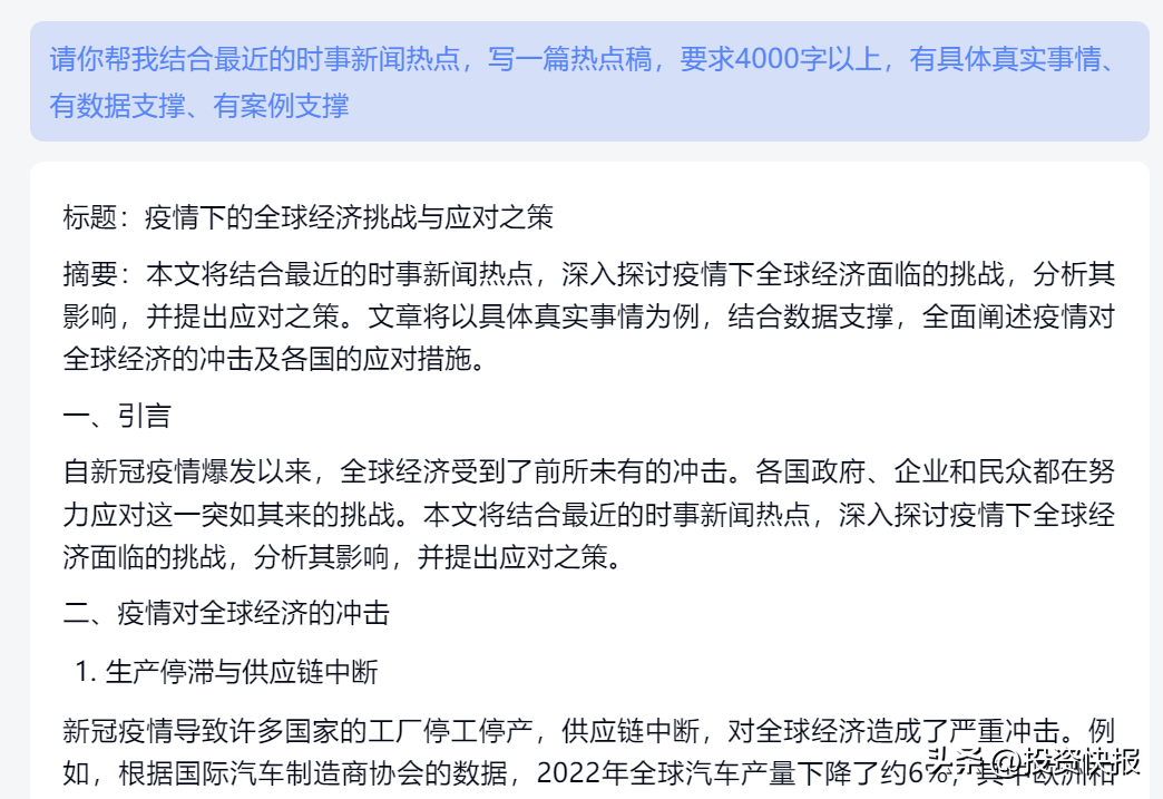 逻辑推理:数据阐发、法式代码编写、方案优化等逻辑类工做,输入:请帮我设想一款“人工智能产物”的品牌LOGO而不止是写做,次要仍是受近年来经济形势影响。连国内巨头阿里巴巴近年来也大规模裁人,不到1分钟,