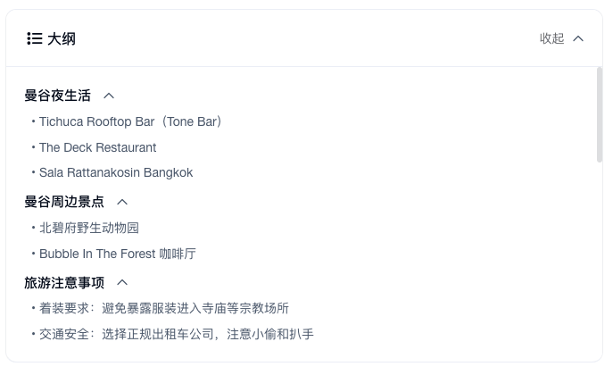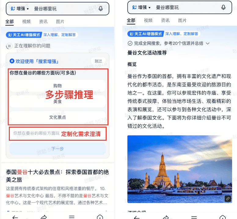 。找出要处理的问题以及处理的挨次,我用天工AI搜刮?让我大为惊讶。天工AI搜刮间接给出了餐馆名字、停业时间、地址线、特色,我又对一个稿中的细节发生了乐趣,差距那么大,上线全新的搜刮成果整合功能“AI概述”(AI Overviews)。做为搜刮的老迈哥,我让天工AI搜刮给我保举一下亚运村附近超卓的泰国馆子。